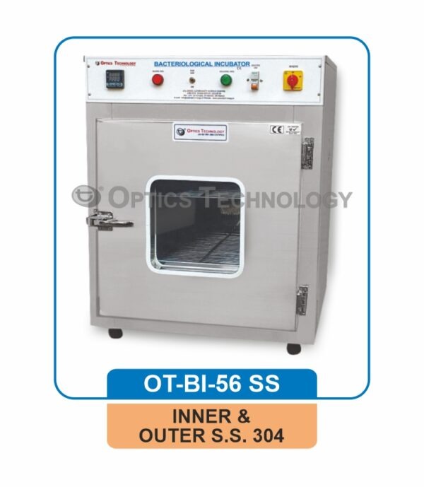 Double walled, Inner chamber made of Stainless Steel 304. Outside Mild Steel painted in epoxy powder coating / stainless steel 304 with wire mesh adjustable shelves, two indicators and on /off switch to work on 220/230 volts A.C. Heating elements are placed in ribs at the bottom and sides. Temperature range Ambient Temp. +5°C to 70°C. The door has synthetic rubber gasket. With one number Air circulating Fan & Microprocessor based PID temperature controller. Specially Designed to maintain 37°C temp.