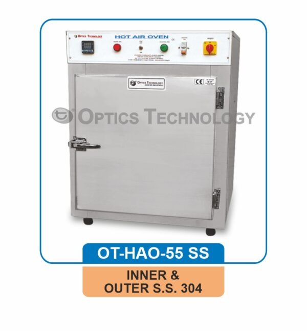 Double walled, Inner chamber made of Stainless Steel 304. Outside Mild Steel painted in epoxy powder coating / stainless steel 304 with wiremesh adjustable shelves, two indicators and on / off Switch. Heating elements are placed in ribs at the bottom and sides. Temperature range Ambient +5°C to 250°C. To work on 220/230 volts A.C. With one number Air circulating Fan & Microprocessor based PID temperature controller.