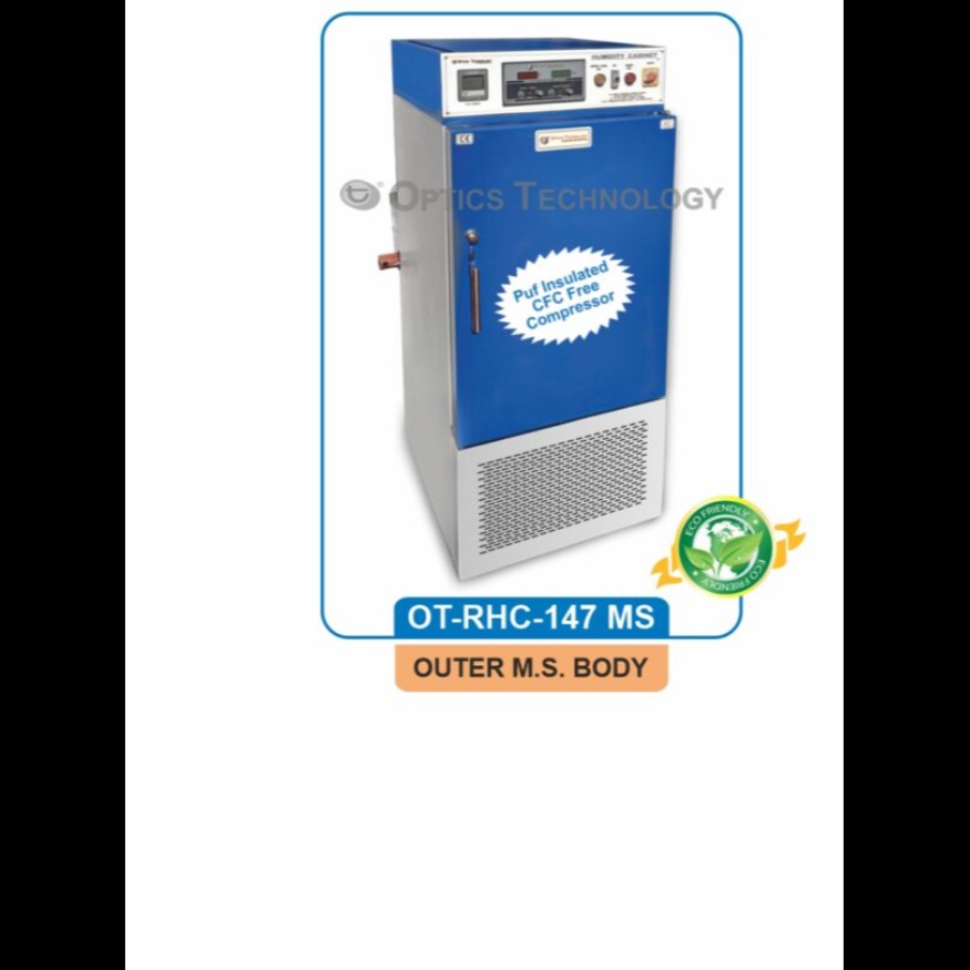 Gap between the walls is filled with special PUF Insulation. Temp. & Humidity is controlled by Digital Temp. & Humidity Controller and Digital volt meter. Atmospheric conditions are created within the chamber. Humidity is created in a S.S. Water Reservoir fitted at the back to provide 40% to 95% ± 3% RH Humidity. Complete with Cord & Pulg to work on 220 Volts A.C.