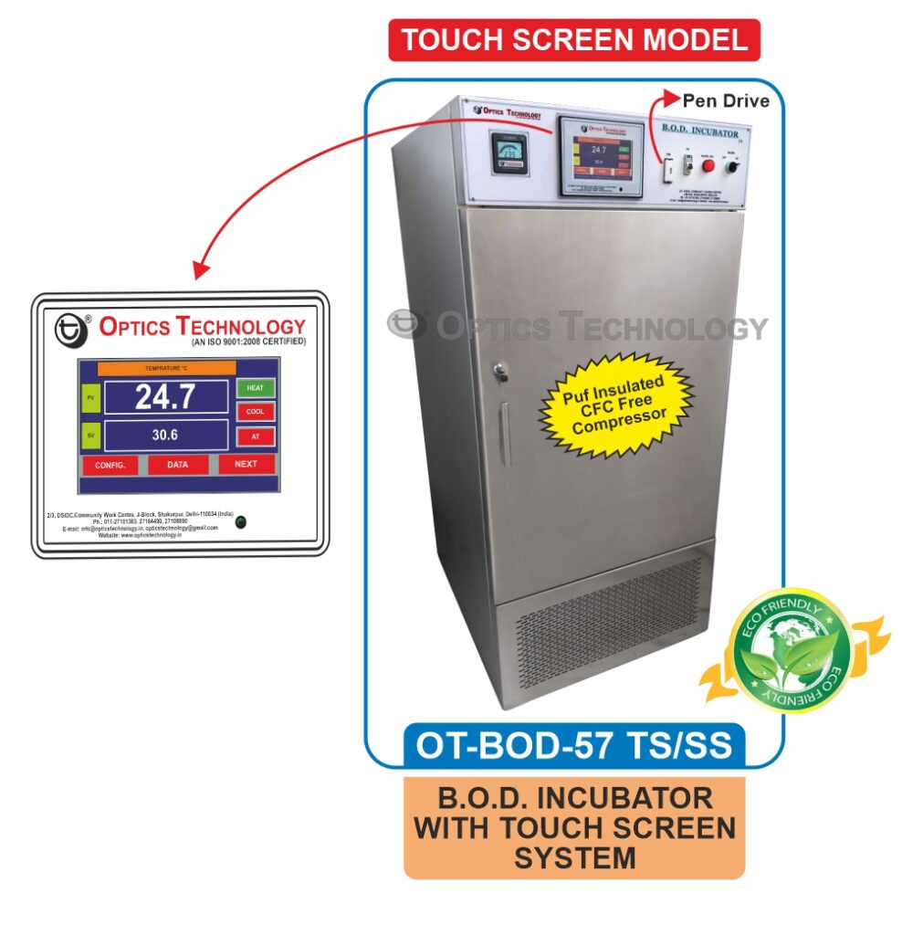 To maintain Temp. below 35°C Inner body is made of S.S. 304. Outer Body made of M.S. Duly Powder Coated / S.S. 304 Temp. Controlled by Microprocessor Based PID Controller With an Accuracy of ± 0.5°C Temp. Range +5°C to 50°C “Hermetically sealed” CFC Free Compressor of “Kirloskar” / Tecumseh with kit (Condensor, Fan, Motor, Compressor in 1 set) The inner chamber is properly insulated with special PUF to prevent thermal losses. Heating by Stainless Steel heaters with fins. Full length inner view flexi glass door. Lock & Key arrangement Caster wheel mounted cabinet for easy movability With 2 No. Air Circulating Fan for uniform temperature. Eco friendly CFC free compressor Special Features: Door operated Light illumination system inside the chamber. Specially designed adjustable S.S. wire mesh Shelves for uniform Temp. Specially designed voltage protection device to protect the instrument from voltage fluctuation. Digital Graphical Display of Voltage. With Automatic On/Off Function system for Fan Calibration Certificate with NABL Traceability will be provided free of cost.