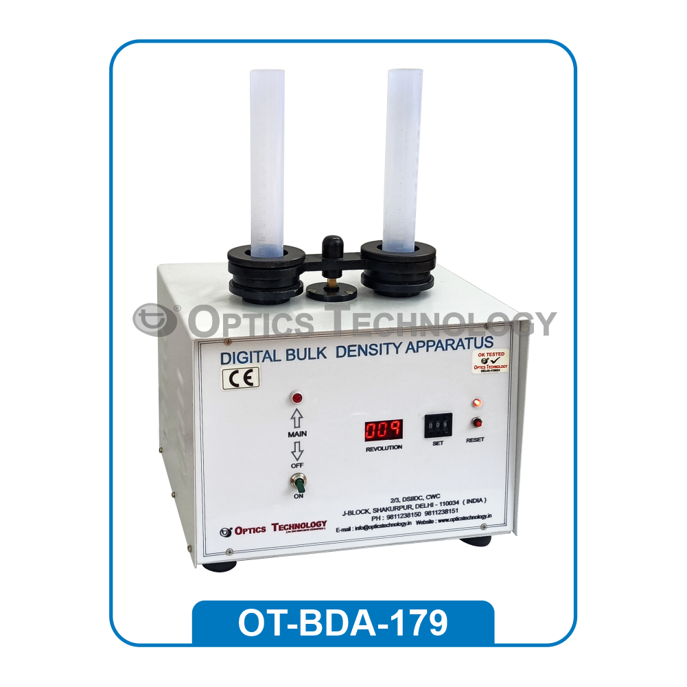 This instrument is used to check the density of powder. Can Hold 2 No. cylinders, capacity : 100 ml. Based on and tapping mechanism, User has to select the No. of stokes in the counter Three models are available as given below Meet USP Standards. BODY IS MADE OF MILD STEEL DULY POWDER COATED / S.S. 304