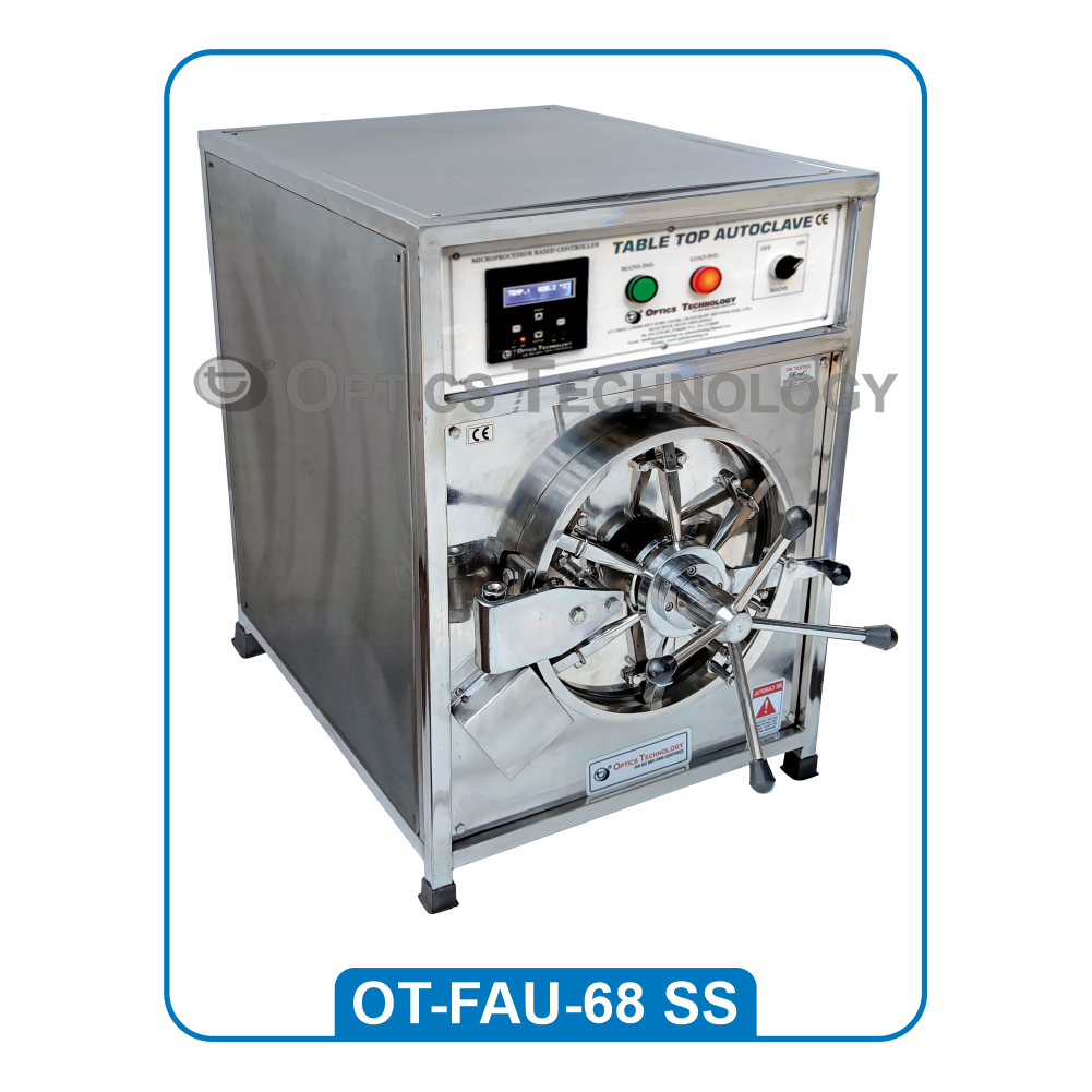 Inner chamber is made of thick stainless steel (304). Outer body is made of thick Mild Steel Duly Powder Coated / Stainless Steel 304. The chamber is absolutely leak proof and can be operated at any Selected point in between 5 to 20 pounds per sq. Inch. It is provided with pressure gauge, pressure release valve, S. S. Tray, safety valve, water level indicator with cord, Plug & Pressure Control Switch. It is provided with Radial Locking System with Automatic Water Level cut off device for element as a safety feature and with Digital Temperature Controller cum Timer. Optional : Vacuum Breaker Valve Calibration Port Safety Alarm Specially designed Lid locking system to make sure lid is locked properly Single Channel Data Logger System (Only with Automatic model) Printing system with thermal printer 21 CFR Software Automatic System OR Microprocessor Based Touch Screen Display system