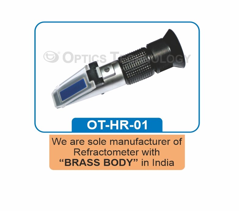 Hand Refractometer is a light-based instrument for field and laboratory uses for estimating sugar contents, Brix in T.S.S. “Optics Technology” make Hand Refractometer (Brix Meter) is specially designed for measuring sugar content in an aqueous solution, soft drinks, sugar solutions, cutting liquid, fruit juice or milk and beverages. Easy to use Cushioned with soft & comfortable non-slip rubber grip, Adjustable focus and clearly defined scale, with easy-to-read measurements