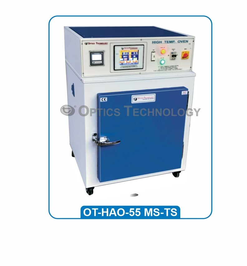 Double walled, Inner chamber made of Stainless Steel 304. Outside Mild Steel painted in epoxy powder coating / stainless steel 304 with wiremesh adjustable shelves, two indicators and on / off Switch. Heating elements are placed in ribs at the bottom and sides. Temperature range Ambient +5°C to 250°C. To work on 220/230 volts A.C. With one number Air circulating Fan. Touch Screen Display Menu driven settings for Controlling parameters Setting / RTC accurate Date Time Clock. Pen Drive for saving of data for printing through PC communication. Optional: Special heavy duty air circulating fan system. Online transfer of data without any cable/wire Interference 21 CFR software (for non-editable data) Note : Hot Air Oven is also available in high temperature (300°C) (Model No. OT-HTO-55)
