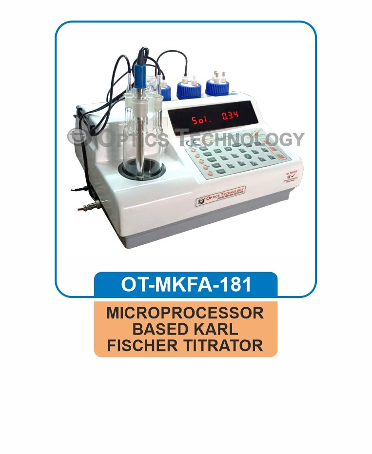 Specifications : Measuring Range : 100 ppm to 100% of moisture Moisture Content : % age: (0.00 to 100%) Calculation : ppm (100 to 999999) Automatic : mg H2O (0.00 to 999.99) End Point Alarm : Visual LED and Audible Alarm Wait Time For End Point Alarm : Adjustable (1 to 59 second) Keybord : 24 keys soft touch, membrane type Sample Storage : Upto 20 latest samples Display : 8 digit bright red, seven segment LED Clock : In-built clock with date and time display Stirrer : In-built magnetic stirrer with adjustable speed