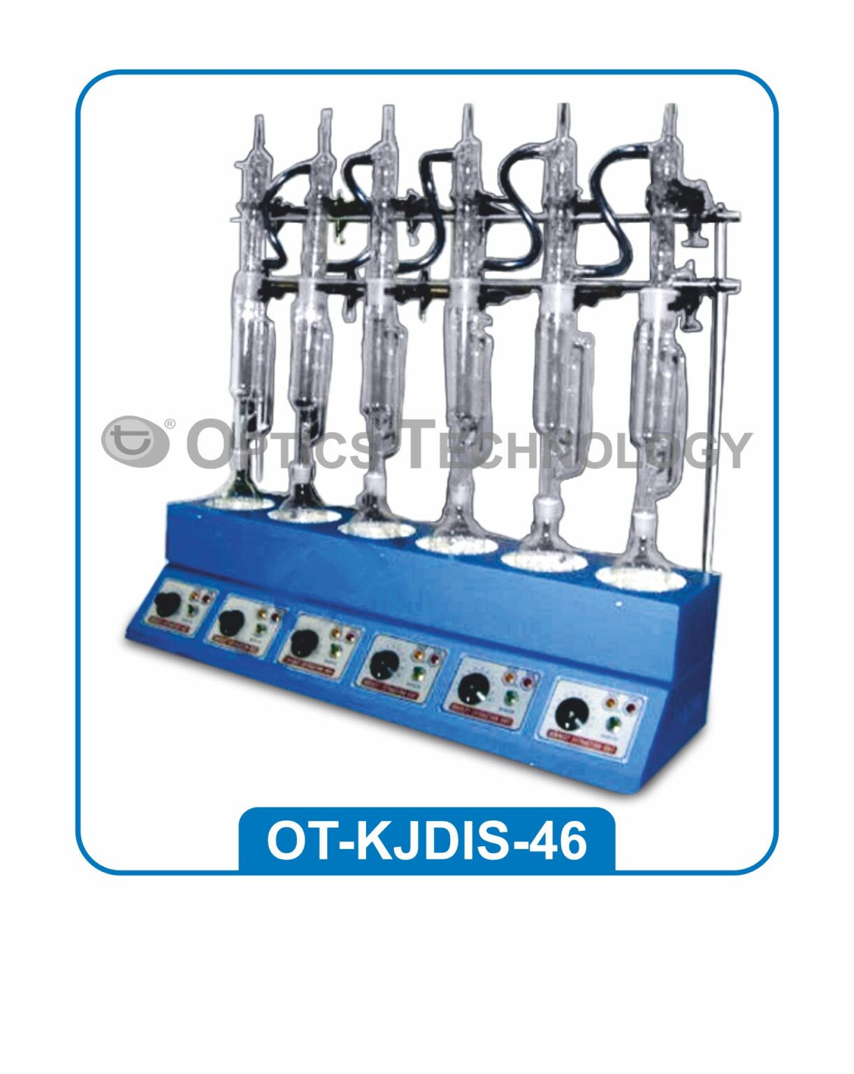 The distillation units are provided with the S.S. fume duct, which is held by clamps (Provided with the unit) suspended on a stand having mobility for both horizontal and vertical movements. The unit consists of 3 or 6 heaters with individual energy regulators. Works on 220V mains Supply. Distillation unit cabinet is made of M.S. Body duly powder coated.