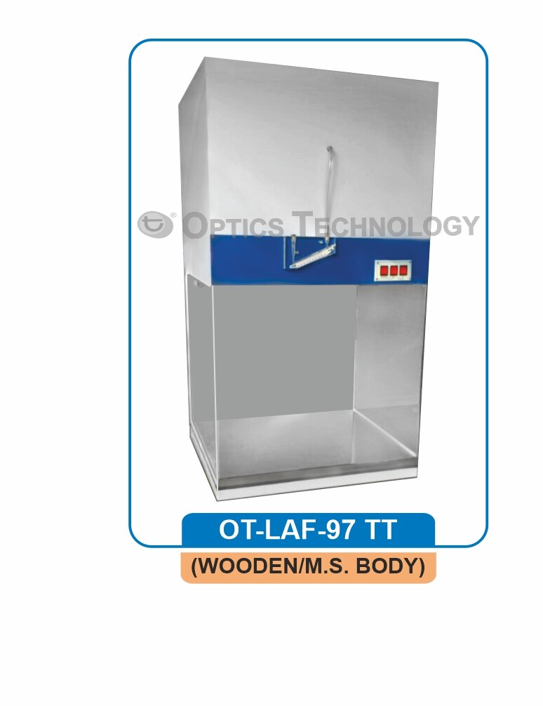 Air Flow: Vertical With Working table of S. S. 304 Body is made of Wooden/ M.S. Duly Powder Coated/ S.S. 304 Imported Mini Pleat HEPA Filter of 0.3µ of an efficiency of 99.97% down to 0.3µ media is of glass fiber & made of pleats back & frown in a anodized Aluminum frame. Prefilter of dry fiber washable type with the frame of on all the sides Confirm the international standards 209 E. Class 100 (As per USFED-STD. 209E) ISO Class 5 (As per ISO-14644.1), IEC 61010-1:2010, ISO 29463-5:2022 Statically Balanced motor blower Assembly (Heavy Duty) Velocity at the output of HEPA is 90 ± 20 FPM Noise level is very low Vibration is also very low Normal working fluorescent Light Static pressure Manometer U. V. Light 1 x 30/15 watts Front Door of Acrylic Sheet (Transparent) Gas cock Or any non standard size Optional: Magnahelic Gauge in place of Static Pressure Manometer. Digital Manometer U.V. Resistant Poly Carbonate sheet in place of Acrylic Sheet. Automatic Safety system for U.V. light. Automatic start system filtered Air & Normal light in Laminar Air Flow LCD display with soft touch switches for Motor, U.V. Light, F.V. Light & U.V. Timer Automatic motorised front door lifting arrangement Online transfer of data without any cable/wire Interference MICROPROCESSOR BASED TOUCH SCREEN DISPLAY SYSTEM Display of velocity with lower and upper safe limits. Display of total run time of instrument & timer for U.V. lamp Control of U.V. light to prevent the operator from U.V. rays as and when required. Automatic Door sensors to switch off the U.V. light when door is opened. Display of message for life of HEPA filter, U.V. light etc.