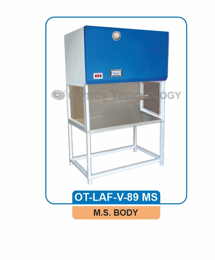 The body is made of wooden / M.S. Duly Powder Coated / S.S. Body. With all accessories which are: Working table of S.S. 304 Mini Pleat HEPA of 0.3 µ of an efficiency of 99.97% down to 0.3 micron. Media is of glass fiber & made of pleats back & fro in an anodized aluminum frame (With Test Report) Pre filter of dry fiber washable type with the frame of on all the sides Confirm the international standard 209 E. Class 100 (As per USFED-STD. 209E) ISO Class 5 (As per ISO-14644.1), IEC 61010-1:2010, ISO 29463-5:2022 Statically & Dynamically Balanced motor blower Assembly (Heavy Duty) Very Less Electrical Load Energy Efficient Blowers Velocity at the output of HEPA is 90 ± 20 FPM Noise level is very low Vibration is also very low. Normal working fluorescent Light Static pressure Manometer U. V. Light Front & Side Door of Acrylic Sheet (Transparent) Gas cock