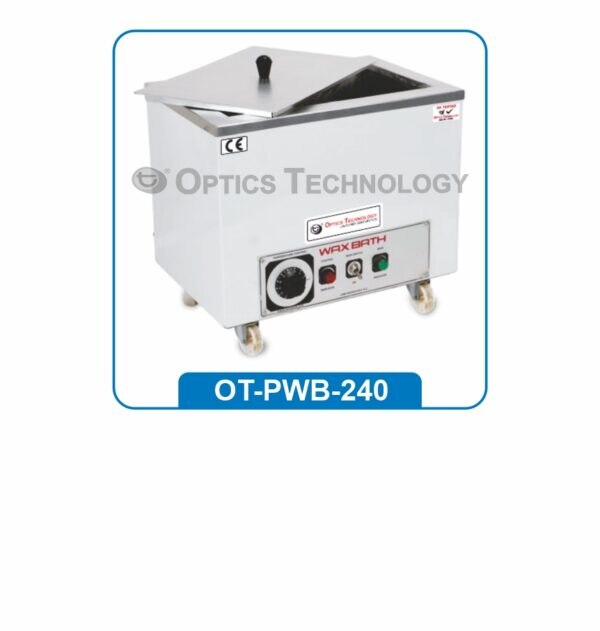 Double walled outer made of M.S. Duly Powder Coated / S.S. 304 Inner stainless steel 304 grade. The bath consist of 2 pilot lamps & on-off switch. Supplied with immersion heaters. Temp. controlled by Thermostat from ambient temp. +5ºC to 95ºC ± 1ºC Model No. Capacity OT-PWB-240-MS/SS-A 2 Ltrs. OT-PWB-240-MS/SS-B 3 Ltrs. OT-PWB-240-MS/SS-C 4 Ltrs. OT-PWB-240-MS/SS-D 5 Ltrs.