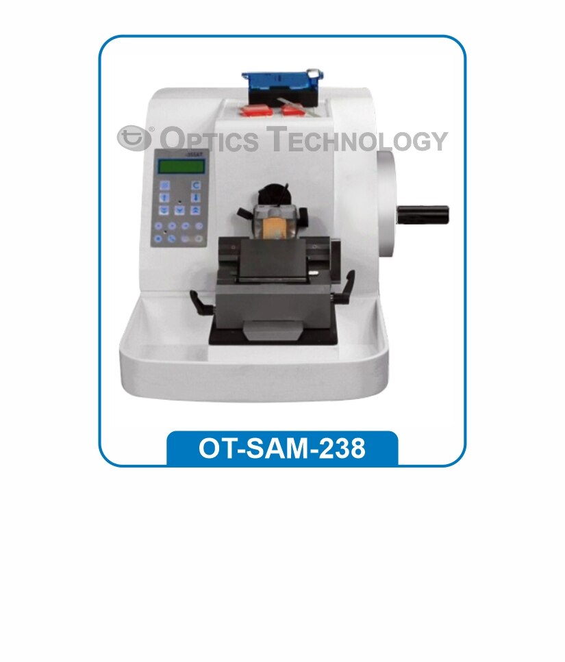Optics Technology semi automatic microtome which is the most advanced sectioning equipment for medical colleges, universities, research laboratories, hospitals and educational institutes at an impressive price / performance ratio and leaves nothing to be desired of in its class. Motorized advanced and retract keys allow for smooth, precise positioning of the microtome chuck to the blade holder. Features • LCD Display with feather touch keypad • Cutting/Trimming Mode • Fast Forward/Backward Function • Increase/Decrease Section Thickness • Adjustable Retraction • Motorised Feed Drive • Finger Protection Guard • Standard/Universal Cassette Clamp