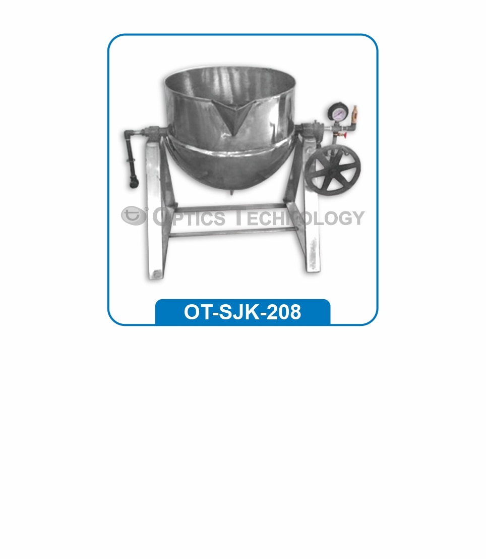 Steam Jacketed Kettle that is widely used in pharma, food and various industries. This kettle is widely appreciated for its sturdy finish. Further, to meet the diversified demands of our esteemed clients. Latest technology in conformity with the international quality standards. Acknowledged for their precise dimension, high strength, abrasion resistance, easy usage, low maintenance and compact design. The inner surface of kettle is driven by attached geared motor or gear box motor attachment. The scraper attachment ensures that there is no blackening or charring of product white cooking or heating using SS-304. Model No. Capacity OT-SJK-208-A 10 Gallons (38 Ltr. Approx) OT-SJK-208-B 25 Gallons (95 Ltr. Approx) OT-SJK-208-C 50 Gallons (190 Ltr. Approx) OT-SJK-208-D 100 Gallons (380 Ltr. Approx)