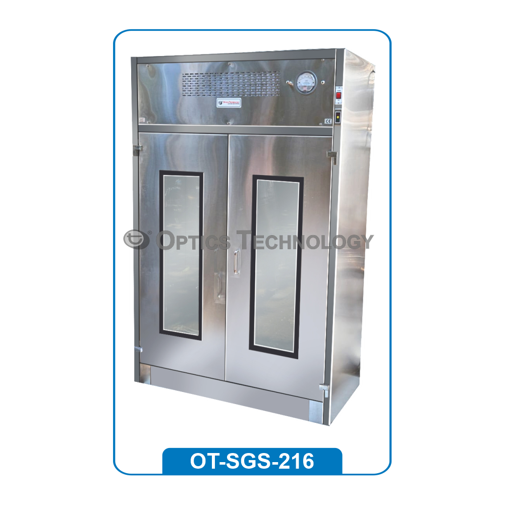 ( Stainless Steel SS 304 with HEPA Filter ) These specially designed cabinets provide a wash of sterile filtered, clean air through Imported Mini Pleat HEPA Filters having an efficiency of 99.97% down to 0.3 micron particle size. This cabinet protects dust and other particulates on clean room garments or other materials. For use in the change Room for garment storage & inside the clean room for storage of materials. Self standing cabinet provides down flow clean air to clean room garments. Features: Wooden / M.S. Duly Powder Coated / Stainless Steel 304 Body. Can be designed in Horizontal air flow system also. “All visible exposed surfaces white laminated, giving high impact resistance with smart clean appearance.” Large interior capacity for handling upto 20 garments at a time. Special provision for wire mesh shelves (optional) for component storage. Low power consumption suitable for operation on single phase supply. Any non standard size can be made on order. Applications: Pharmaceuticals Industries, R & D Laboratories, Hospitals Electronic Components and Semiconductor Industries, Photographic Laboratories, Optical Instruments Industries. Model No. Working Size L x B x H OT-SGS-216-W/MS/SS-A 2' x 1.5' x 3.0' OT-SGS-216-W/MS/SS-B 2' x 2.0' x 3.0' OT-SGS-216-W/MS/SS-C 3' x 1.5' x 4.5' OT-SGS-216-W/MS/SS-D 3' x 2.0' x 4.5' ' OT-SGS-216-W/MS/SS-E 4' x 1.5' x 4.5 OT-SGS-216-W/MS/SS-F 4' x 2.0' x 4.5' Optional: Magnehelic Gauge