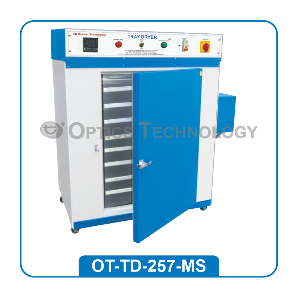 Used in pharmaceuticals, chemicals, dyes and food industries for various heating and drying applications. Sizes ranges from 6 to 96 trays with heating upto 200°C. Electrically operated tray dryer is with double walled construction inner S.S. & outer made of M.S. body duly powder coated / S.S. 304. All the trays are made of S.S. 304. It is provided with glass wool insulation through out the chamber fitted with electrical motor with fan with pillow block bearings. Temp. Controlled By Microprocessor Based PID Controller & AIR Circulating Fan For Uniform Temperature.